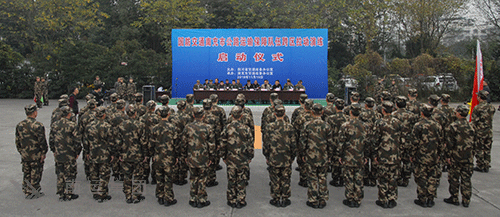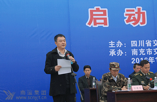 啟動儀式現(xiàn)場 國防交通南充市公路運輸專業(yè)保障大隊副大隊長、南運集團董事長、總經(jīng)理、黨委書記王希平作戰(zhàn)前動員。