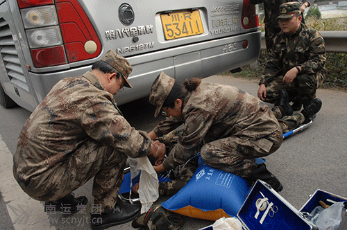 四川省交通戰(zhàn)備辦公室副主任王子開講話  南充市政府副秘書長黃金樹講話  國防交通南充市公路運輸專業(yè)保障大隊一中隊車輛在行進(jìn)中  途中更換輪胎  遇冰雪道路安裝防滑鏈條  途中組織醫(yī)療救護(hù)