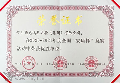 南運集團榮獲“2020-2021年度全國 ‘安康杯’競賽優(yōu)勝單位“稱號