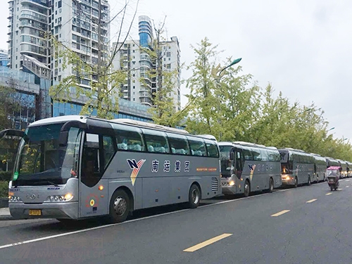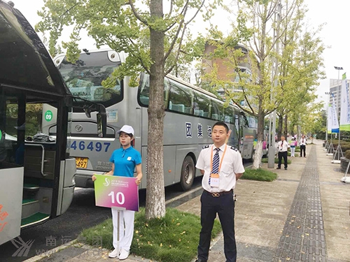 南運(yùn)集團(tuán)歐洲之星豪華大巴駕駛員在遂寧市恭候中外嘉賓乘車