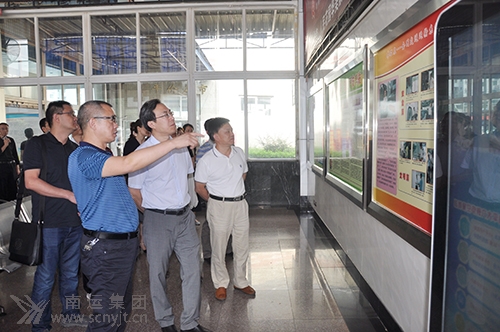 李茂林(右二)、陳光華(右一)在南充汽車客運站 觀看“安康杯”競賽活動展板