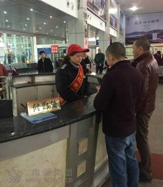 “匡紅艷愛心班”小紅帽正在耐心的解答旅客提出的問題
